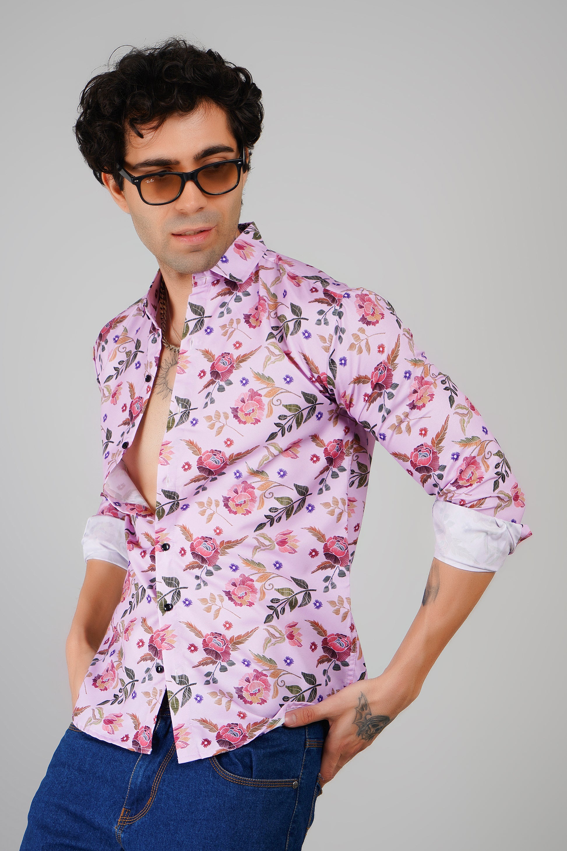 Make a bold style statement with our Blush Bloom Floral Shirt, designed for the modern man who isn’t afraid to stand out. This eye-catching shirt features an elegant floral print on a soft pink base, blending sophistication with a touch of playfulness.