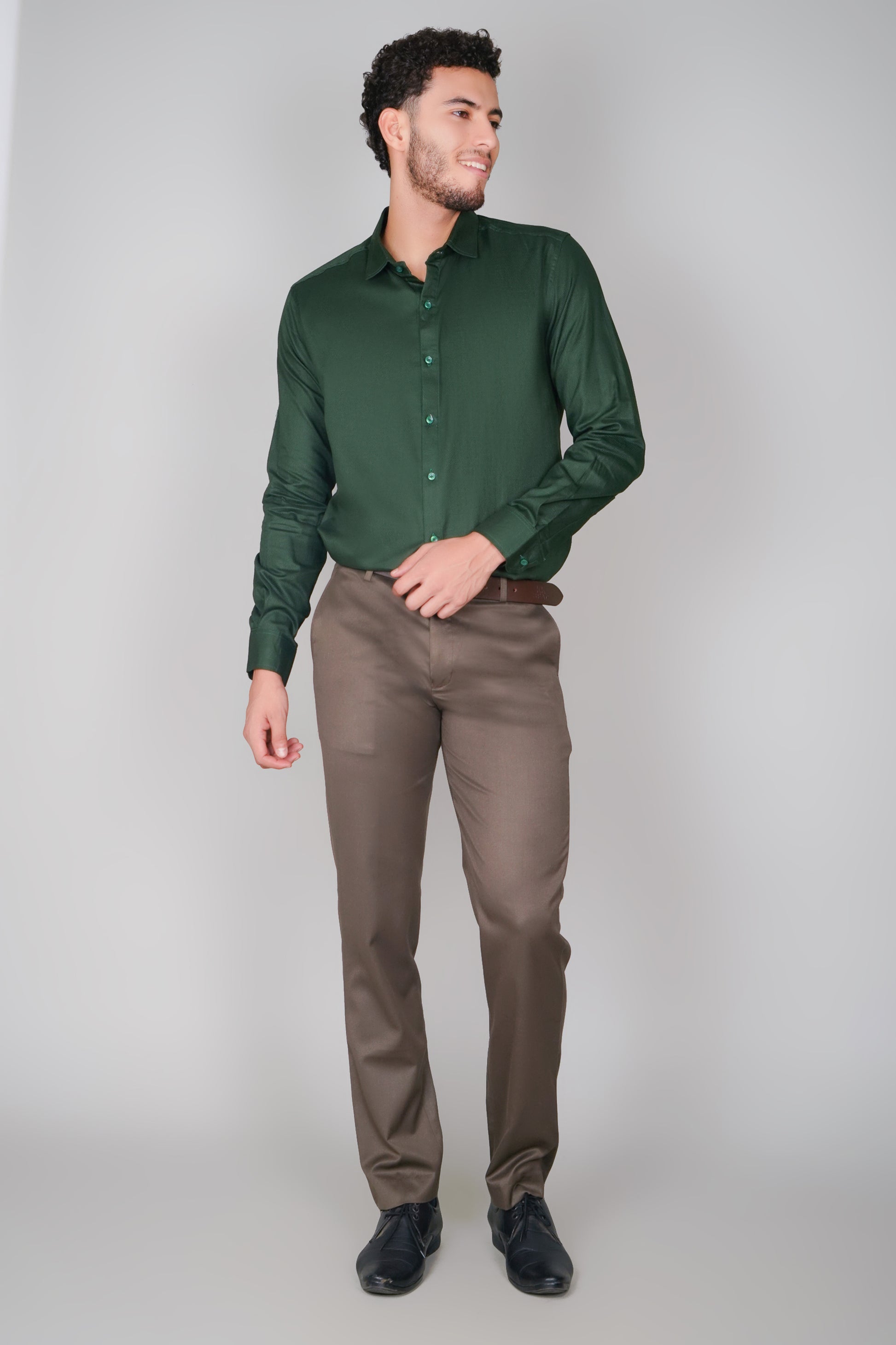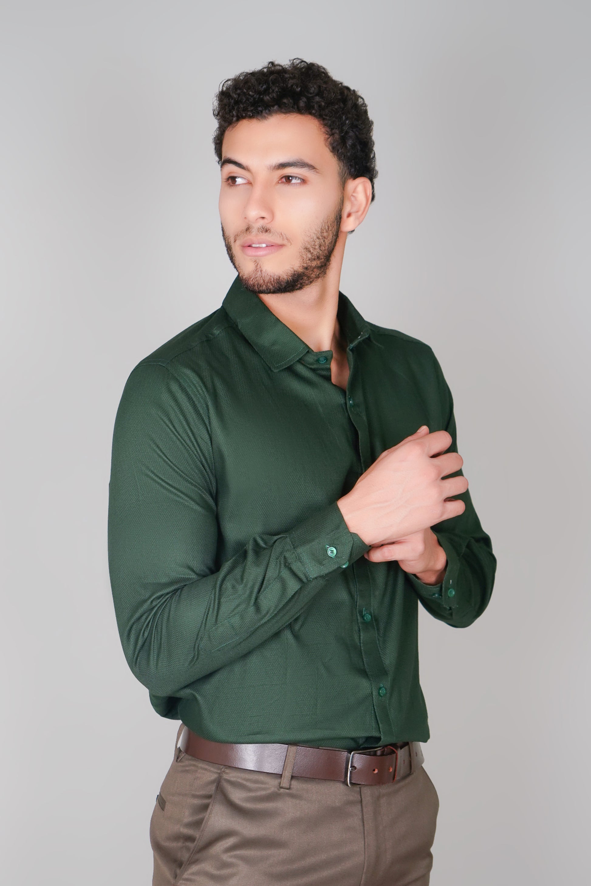 Olive Green Textured Pure Cotton Oxford Tone-On-Tone Shirt