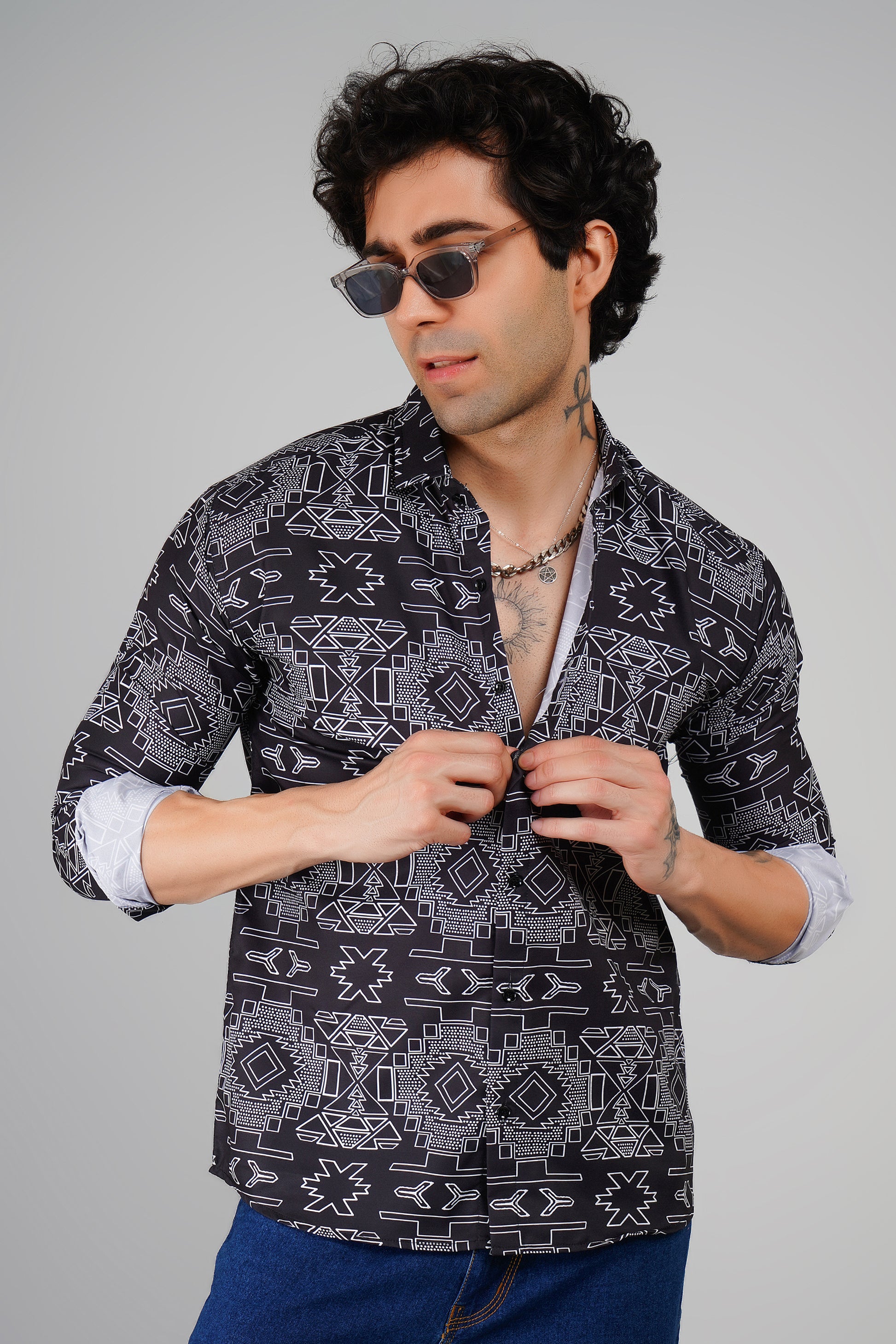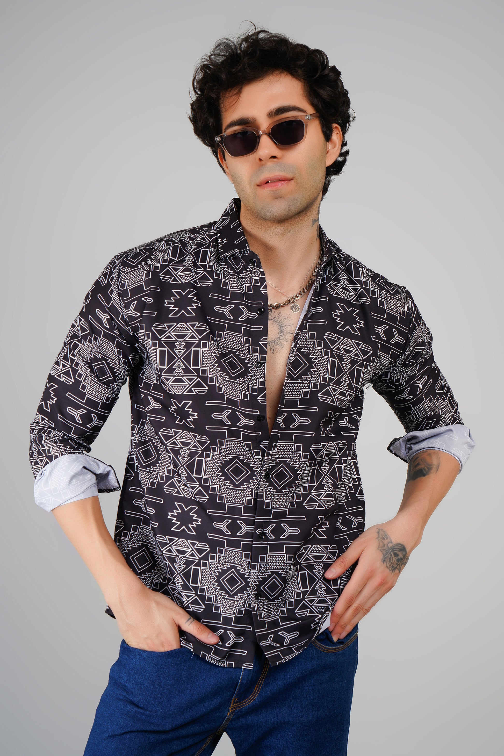 Unleash bold sophistication with the Urban Edge Black Patterned Shirt – a perfect blend of modern edge and timeless style.